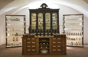 Die Schau beginnt mit einer historischen Zeitleiste der Pharmaziegeschichte, die Bild-Text-Informationen mit Originalobjekten in Vitrinen, Laden und Schubern kombiniert. Es folgt die Darstellung der Arbeit des Apothekers in seinen traditionellen Arbeitsbereichen: im kellerartigen Laboratorium wird die Herstellung von zehn Arzneiformen sowie die Analyse von Arzneimitteln inszeniert und erläutert, die Kräuterkammer präsentiert die kostbaren Kräuterbücher und Waagen, in der repräsentativen Offizin dominieren die Standgefäße. Abschließend wird - ausgehend von Paracelsus - die Geschichte der Arzneimittel bis zur Gegenwart erschlossen. Ein weiterer Raum steht für Sonderausstellungen und museumspädagogische Aktivitäten zur Verfügung.